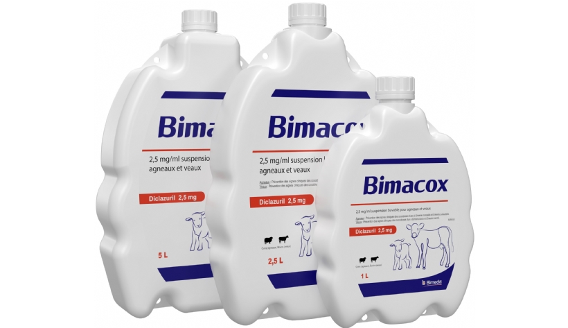 Bimeda a mis sur le marché, en novembre, Bimacox ND suspension buvable pour agneaux et veaux, anticoccidien à base de diclazuril 2,5 mg/ml. Il est indiqué pour la prévention des signes cliniques des coccidioses dues à Eimeria crandallis et Eimeria ovin...