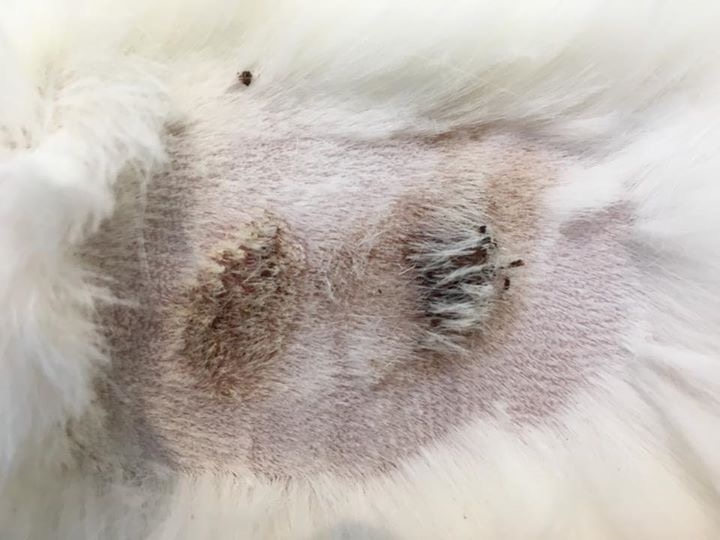 Photo 1 Carcinome épidermoïde in situ (maladie de Bowen) chez un chat : lésions sur la face dorsale du dos.