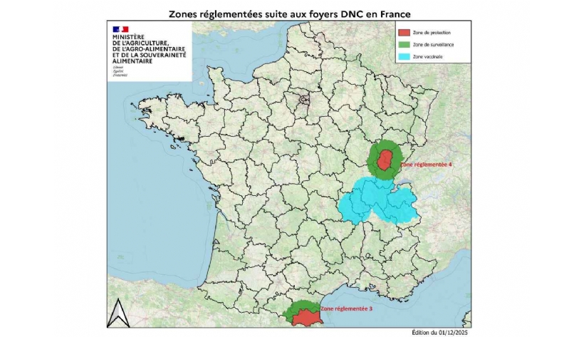 Le ministère précise qu'un million de bovins auraient déjà été vaccinés en France depuis septembre dans les zones réglementées et vaccinales et estime que la DNC est « sous contrôle » dans le pays.