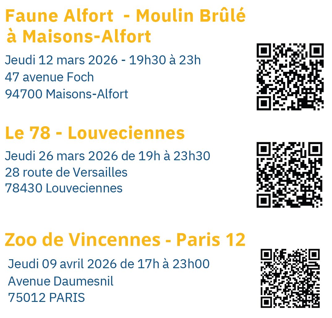 Inscription aux trois réunions en ligne : www.billetweb.fr/soiree-syndicale-faune-alfort ; www.billetweb.fr/soiree-syndicale-restaurant-le-78 ; www.billetweb.fr/visite-du-zoo-de-vincennes-et-diner-syndical.