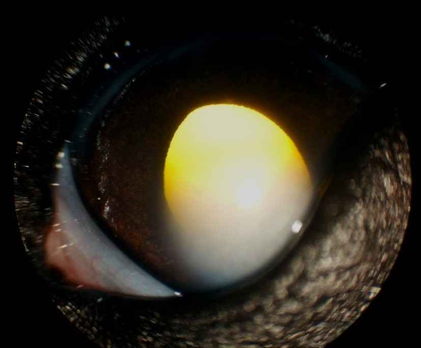 Cette chienne âgée de 3 mois et ses parents sont homozygotes sains pour la mutation du gène ADAMTS17 (A Disintegrin and Metalloproteinase with Thrombospondin Motif 17) associée à la luxation primaire du cristallin dans plusieurs races canines chez des sujets plus âgés.