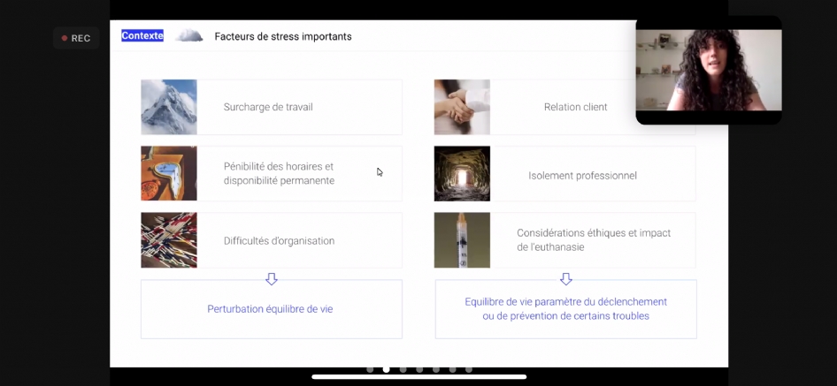 Une des lauréates du prix Ampli Mutuelle 2020, Anne Bertoliatti-Fontana (ENVA), a présenté son travail sur la conciliation vie personnelle et vie professionnelle chez les femmes vétérinaires.