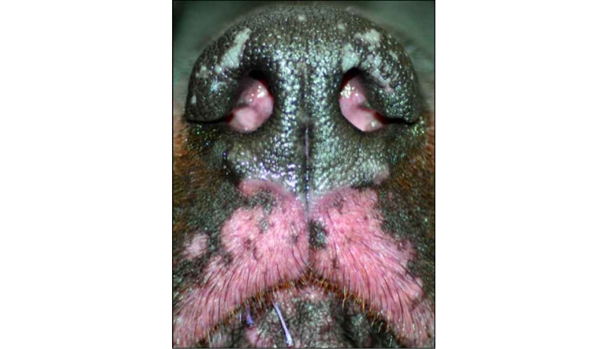 Un rottweiler mâle de 2 ans est présenté pour une dépigmentation progressive de la truffe et des lèvres évoluant depuis 6 mois (photos). Ce chien vit en maison/jardin et est très bien entretenu par son propriétaire. Il réside exclusivement dans le nord de...