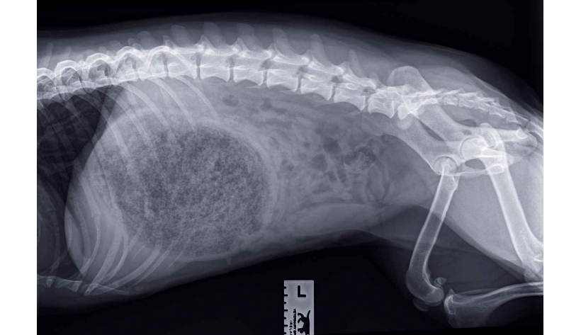 Mercredi 26 Novembre 2025 Animaux de compagniePhoto n° 1B : Radiographie abdominale de profil.