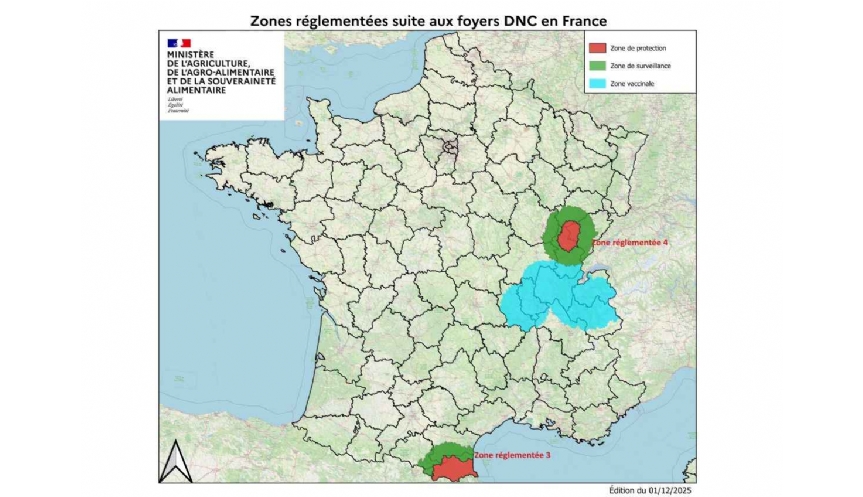 La ministre de l'Agriculture réunira, le 9 décembre, le Conseil national d'orientation de la politique sanitaire animale et végétale (Cnopsav, composé des représentants des acteurs de l'élevage, dont les vétérinaires) tandis que de nouveaux départements s...