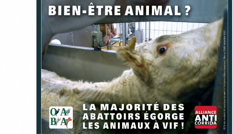 A l'heure où le Parlement légifère contre les maltraitances animales, l'OEuvre d'assistance aux bêtes d'abattoir (OABA) et l'Alliance Anticorrida ont uni leurs forces pour « informer les concitoyens sur le scandale de l'abattage sans étourdissement ».