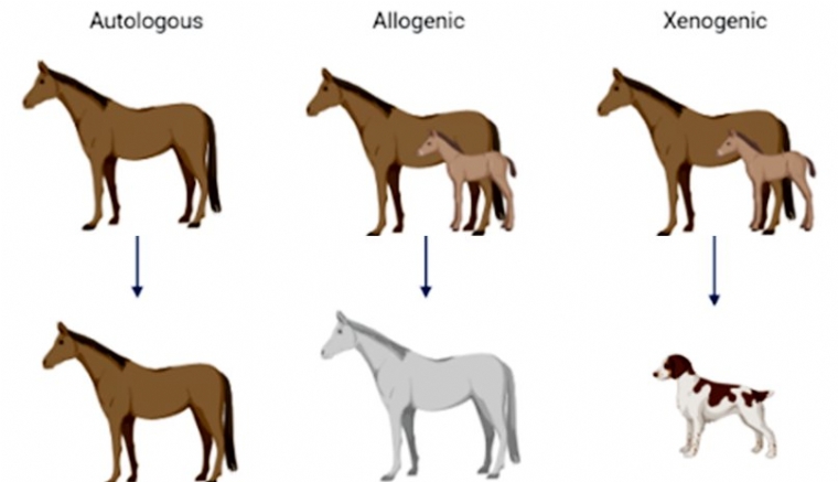 Les cellules souches peuvent être utilisées chez l'animal donneur ou chez un autre patient de la même espèce ou d'une autre espèce.