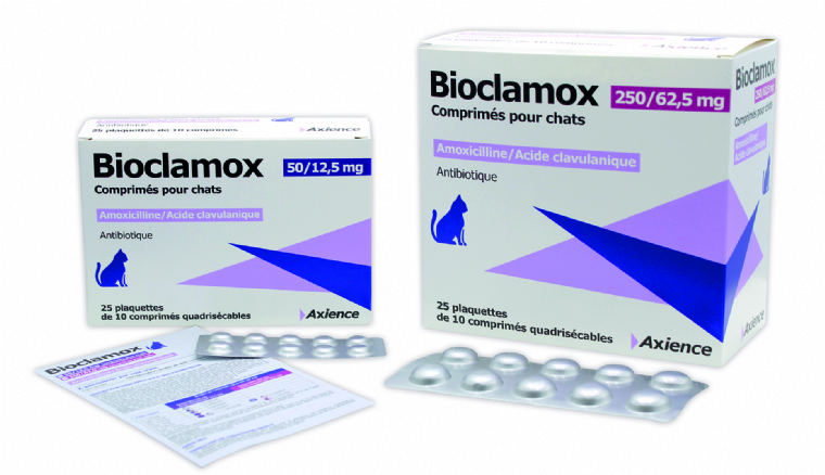 Axience propose Bioclamox ND, « la première amoxicilline-acide clavulanique qui permet de limiter le nombre de comprimés à administrer pour les grands chats (de 5 kg et plus) » .