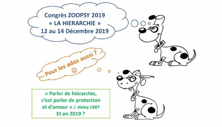 Zoopsy organisera son congrès annuel sur un thème d'actualité, la hiérarchie, du 12 au 14 décembre, à Toulouse. L'association proposera aux participants « de réfléchir de manière positive sur ce concept de façon transdisciplinaire et trans-spécifique ». Au programme, des interventions sur la hiérarchie chez les singes et d'autres espèces animales sauvages ou domestiques, des thérapies comportementales classiques ou nouvelles, des exposés de cas cliniques, des données bibliographiques, etc. Zoopsy proposera aussi une section « courtes communications : regards libres ». Ces présentations seront animées par des conférenciers membres de l'association mais aussi des intervenants inédits de différents horizons professionnels (vétérinaires, psychiatres, psychologues...).