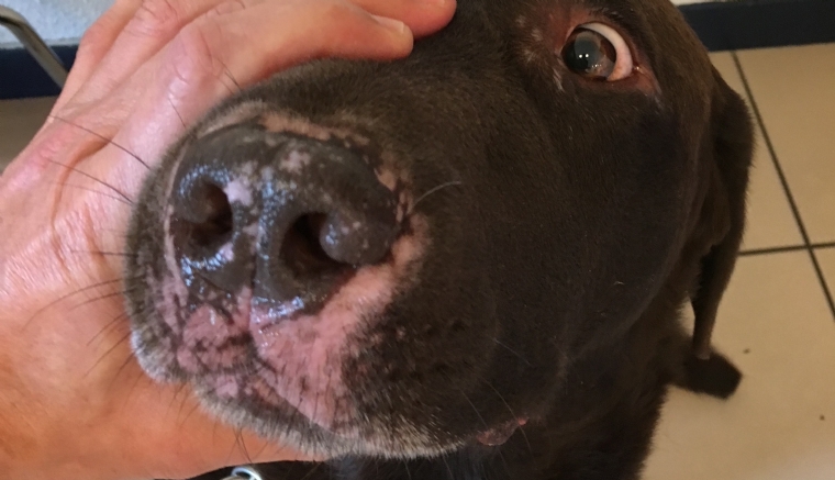 Mercredi 8 Juin 2022 Animaux de compagnieRéaction d'urticaire avec gonflement du museau d'apparition brutale (ici secondaire à une allergie à un médicament).