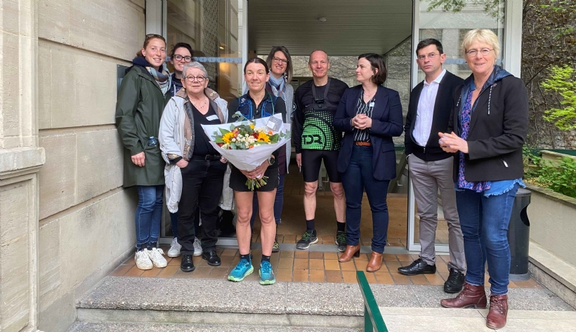 Camille Urvoy a été accueillie à l'issue de cette journée et de son défi sportif dans un timing parfaitement concordant. ■