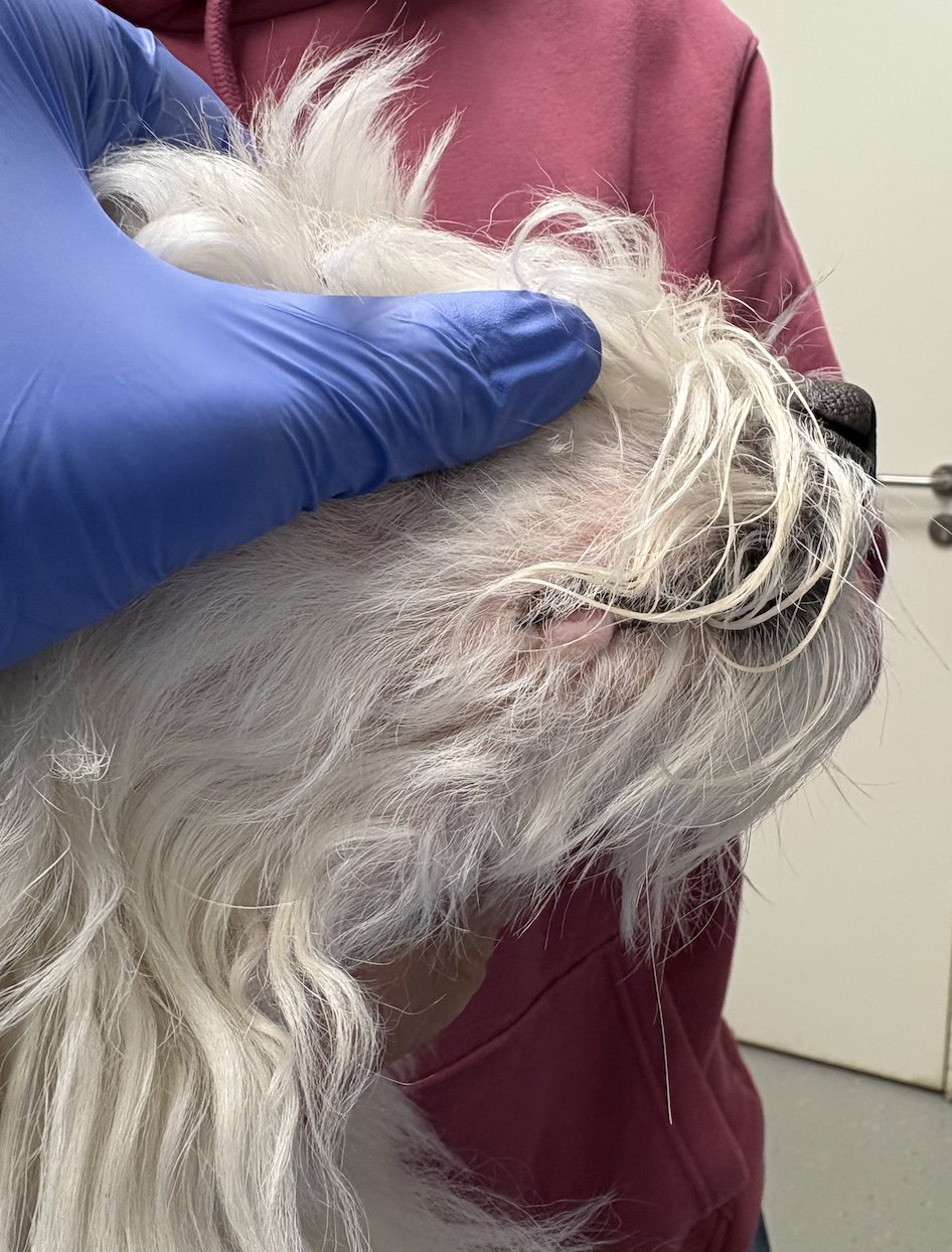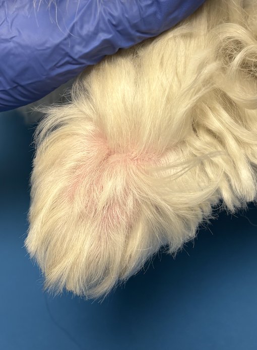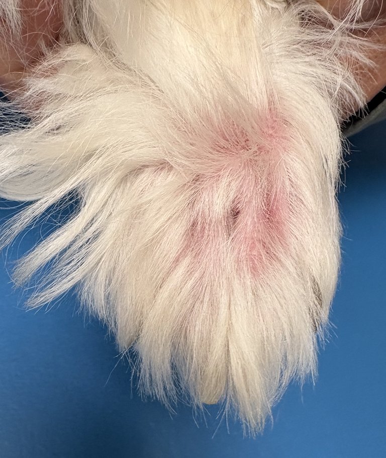 Afin d'illustrer ce propos, nous présentons le cas de Milou, coton de Tuléar mâle entier de 5 ans, présenté pour un prurit intense évalué par le propriétaire à 8/10, associé à de l'érythème.