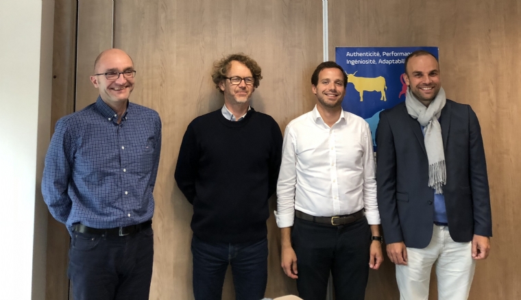 Mercredi 10 Octobre 2018 EntrepriseDe gauche à droite : notre confrère Olivier Duran, directeur général d'Alcyon, aux côtés des fondateurs de CaptainVet Julien Cavarec, praticien mixte en Bretagne, Nicolas Charbonneau, président de CaptainVet, en charge du développement commercial, et André Cloarec, marketeur digital.