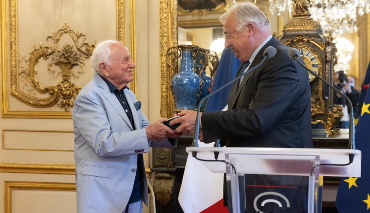 Gérard Larcher remet la médaille du Sénat à Michel Klein.