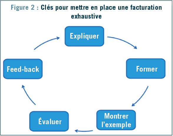 Cet exemple montre très clairement l'importance de cette facturation exhaustive, et il existe quelques clés afin de la mettre en place au sein de sa clinique (cf. fig. 2, page suivante). Le premier point est d'expliquer à tous les employés les règles de facturation de la clinique et l'importance de les respecter. Il faut ensuite les former à cela mais aussi et surtout leur montrer l'exemple au quotidien. En effet, il arrive souvent de constater que la majorité des remises intempestives ou «oublis» de facturation dans une clinique vétérinaire sont le fait d'associés. Autre mesure concrète : évaluer chaque salarié très tôt dans le processus d'intégration en révisant de manière constructive un échantillon de ses factures avec un associé ou un chef de service.