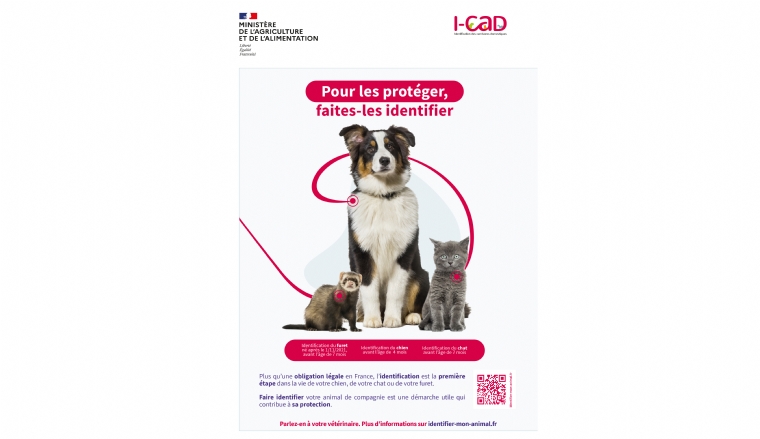 Une affiche fournie par I-Cad est encartée dans La Dépêche Vétérinaire papier n° 1598-1599 pour que les confrères puissent se conformer à leurs nouvelles obligations d'affichage sur l'identification.
