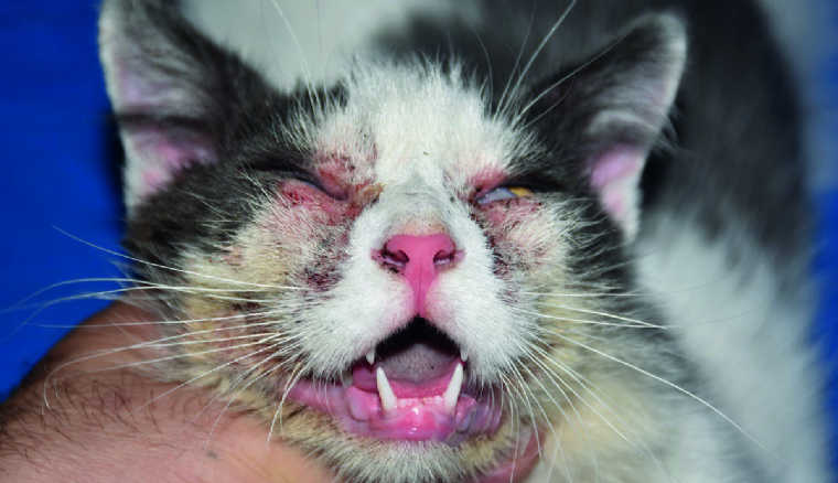 La ciclosporine (CsA) est utilisée depuis 2000 chez le chat, pour des indications dermatologiques, dans le traitement des formes réfractaires de plaques éosinophiliques et d'ulcères atones et celui des dermatoses allergiques puis, en 2004, dans le traitement de « l'urticaire pigmentaire ». En 2014, une autorisation de mise sur le marché a été obtenue dans l'indication « traitement symptomatique de la dermatite allergique chronique ». ■