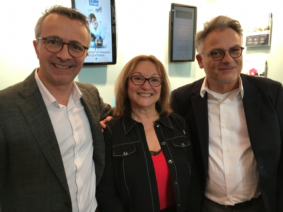 Mercredi 11 Décembre 2019 EntrepriseTanguy Hamet, directeur des partenariat au sein de La Compagnie des Animaux, Anne-Marie Le Roueil, présidente de la SNPCC, et Hugues Salord, directeur général de La Compagnie des Animaux.