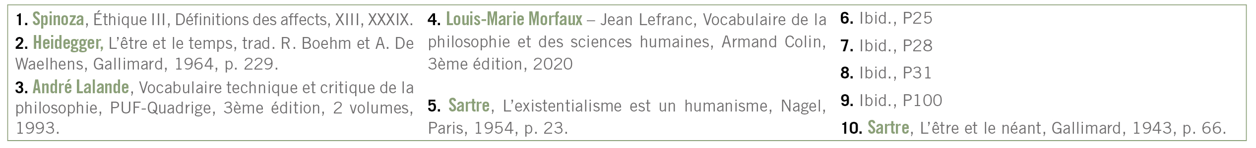Spinoza caractérise la peur (timor) comme « un désir d'éviter un mal plus grand, que nous craignons, par un moindre 1 ». Pour lui, la peur est donc une spécification tout à fait particulière de la crainte, qui est elle-même foncièrement liée à l'espoir. Heidegger, quant à lui, s'interroge en 1927 dans L'être et le temps, plus précisément sur la différence entre la peur et l'angoisse. Selon lui, dans la peur quelque chose de nuisible s'approche mais susceptible de se dissiper alors que l'angoisse vient de « l'être-au-monde » lui-même. Comprenons que l'angoisse n'est pas une nuisance particulière mais quelque chose d'indéterminé. Dans l'incapacité de décider ce qui est menaçant et qui angoisse, selon Heidegger « l'angoisse ne sait pas ce dont elle s'angoisse 2 ». Lalande définit l'angoisse en « phénomènes affectifs dominés par une sensation interne d'oppression et de resserrement (angustia), qui accompagne d'ordinaire la crainte ou d'un malheur, graves et imminents contre lesquels on se sent impuissant à se défendre 3 ». Louis-Marie Morfaux fait état d'un sentiment d'oppression ou « d'inquiétude relative à un avenir incertain 4 ». Le manager est plus ou moins angoissé comme tout un chacun. S'ajoutent à cela des peurs spécifiques qui peuvent se démultiplier lorsque les responsabilités s'accumulent, les enjeux s'intensifient et la pression monte.