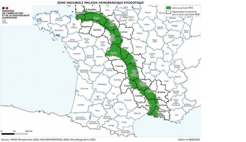 « Au vu de l'évolution de la maladie hémorragique épizootique (MHE) sur le territoire national, et comme le ministre Marc Fesneau s'y était engagé, la stratégie vaccinale vient d'être établie en concertation avec les filières », annonce le ministère de l'Agriculture le 20 septembre. « Elle vise à limiter la progression de la maladie par la mise en place d'une zone tampon vaccinale. »