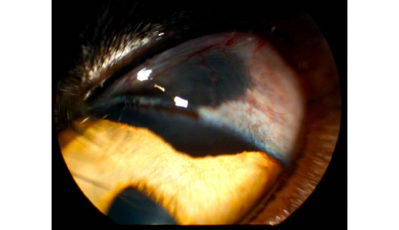 Mercredi 18 Mars 2026 Animaux de compagniePhoto n° 1 : OEil gauche : masse pigmentée scléro-cornéenne à 12 heures.