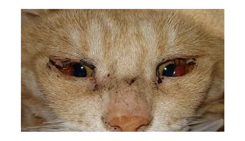 Un chat européen de 4 ans, non médicalisé, est présenté pour une présomption de plaie de l'oeil droit évoluant depuis deux semaines. Les propriétaires ont appliqué une solution physiologique et n'ont pas remarqué d'amélioration.