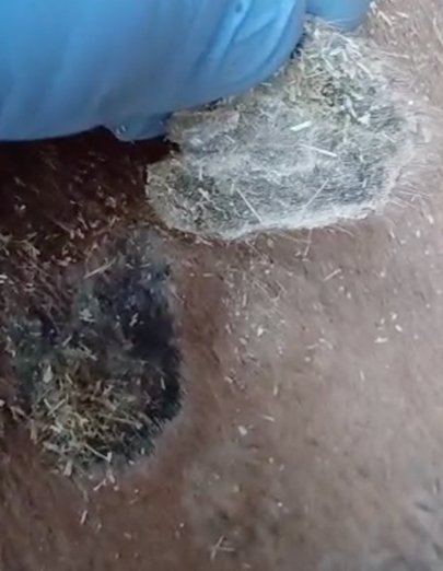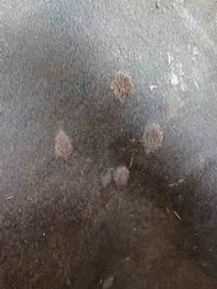 La recherche de la DNC par PCR s'étant révélé négative, de même que celle d'une teigne où les lésions sont parfois similaires, d'autres examens sont en cours (anatomopathologie et virologie). Il pouvait alors s'agir d'une infection par le BoHV-2 (pseudo-dermatose due à l'herpèsvirus bovin 2, PDCN) provoquant des lésions cutanées plus superficielles avec des symptômes discrets et d'évolution plus courte vers la guérison.