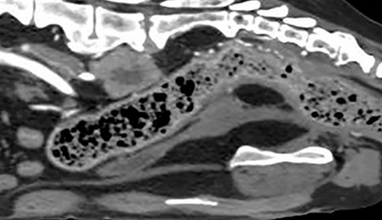 Mercredi 5 Septembre 2018 Animaux de compagnieReconstruction sagittale d'un scanner abdominal.
