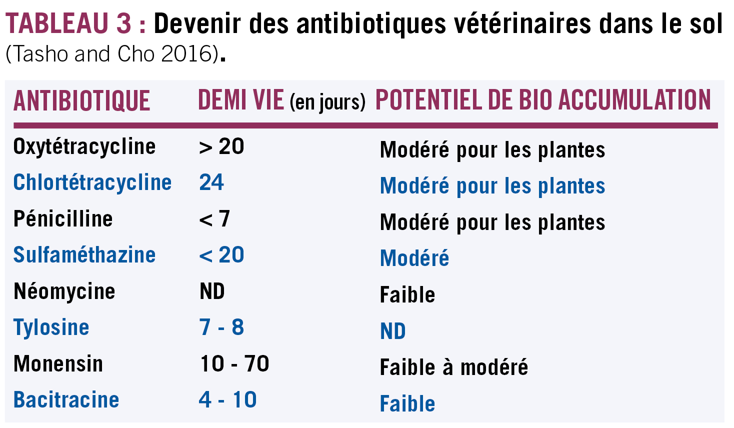 Soulignons que les antibiotiques peuvent en plus avoir des effets sur le métabolisme des végétaux (Rocha et al. 2021). Ils peuvent par exemple inhiber la germination, induire des modifications de la longueur des racines primaires, ainsi que du nombre et de la longueur des feuilles, inhiber la croissance des tiges et des racines, réduire la biomasse, mais aussi a contrario favoriser une meilleure croissance lorsqu'ils sont à faibles concentrations (Tasho and Cho 2016). Ainsi, deux axes majeurs identifiés pour essayer de maîtriser cette contamination de l'environnement seront abordés dans cet article :