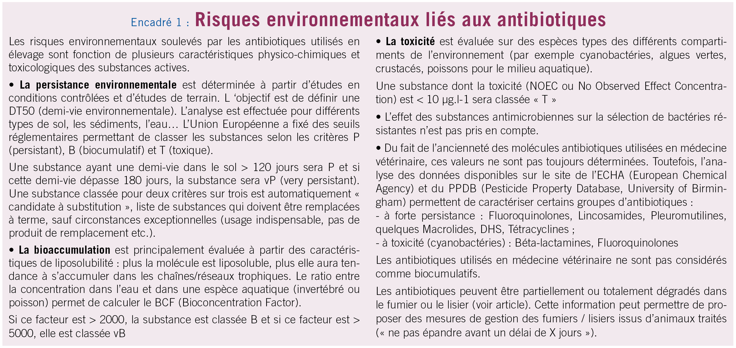 Toxicité des antibiotiques dans l'environnement (cf. encadré 1)