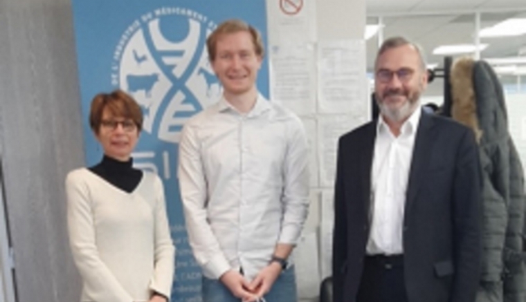 De gauche à droite : Marie-Anne Barthélémy (secrétaire générale du SIMV), Hugo Kaufmann (lauréat 2021) et Jean-Louis Hunault (président du SIMV).