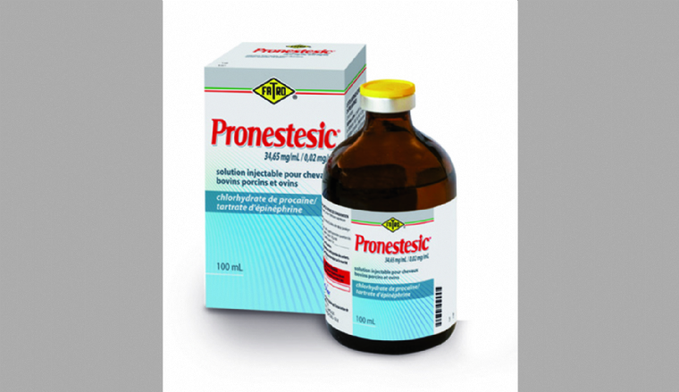 Melchior Santé animale propose Pronestesic ND, « solution injectable de chlorhydrate de procaïne/tartrate d'adrénaline (40 mg/ml + 0,036 mg/ml) pour chevaux, bovins, porcins et ovins qui permet une anesthésie locale longue action (45 à 90 minutes) e...