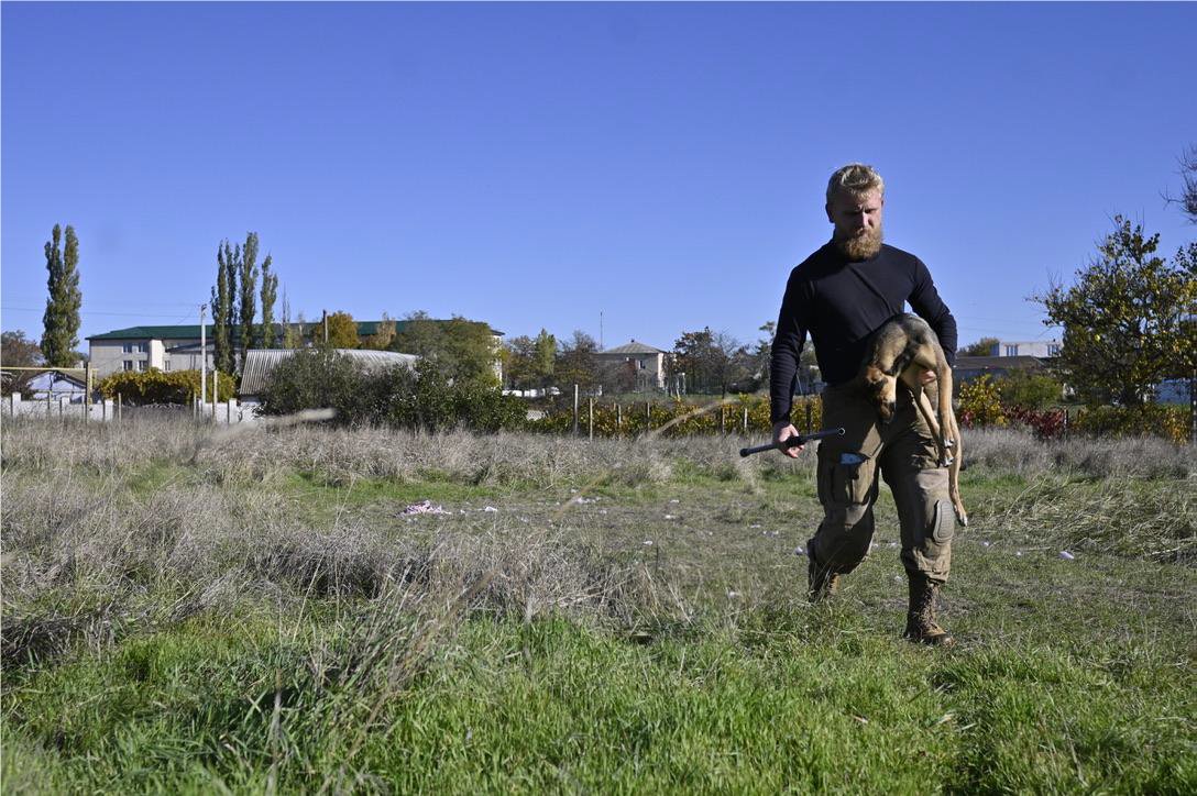 Le chasseur est chargé d'attraper et de ramener les chiens errants. Il utilise un réseau de signalements communautaires pour les repérer. En arrivant à proximité de l'un d'entre eux, une énième alerte aérienne retentit mais, impassible, Andrii, prépare ses flèches sédatives. Équipé d'une sarbacane, il met près d'une heure à endormir le chien effrayé (photo n° 2).