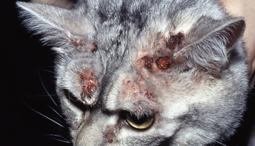 Animaux de compagniePhoto n° 1 : Prurit cervico-facial sur un chat. Noter l'importance des excoriations.