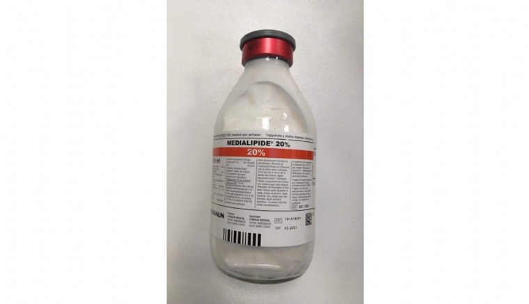 Poche de 250 ml d'émulsions lipidiques (Médialipide ND 20 %).