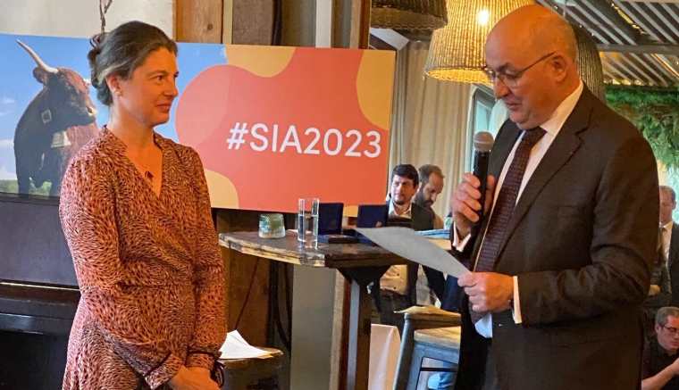 : Sandrine Lyonnet a reçu la médaille du SIA le 26 avril des mains de Jean-Luc Poulain, président du Centre national des expositions et concours agricoles.