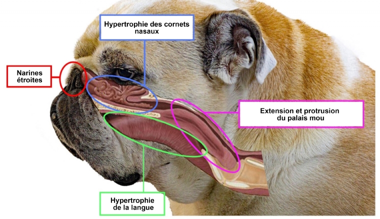 Les chiens sont un bon point de départ pour la description et l'analyse anatomique des cornets nasaux. Ce travail* fait le point sur l'état des connaissances sur la forme des cavités nasales et les flux d'air chez le chien et traite du syndrome brachycéph...