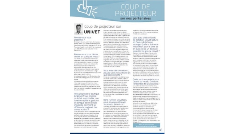 La centrale de distribution Alcyon fait évoluer son magazine mensuel Référence et l'agrémente d'une nouvelle rubrique intitulée « Coup de projecteur sur... » . Cette dernière met en avant, chaque mois, un groupe de cliniques vétérinaires...