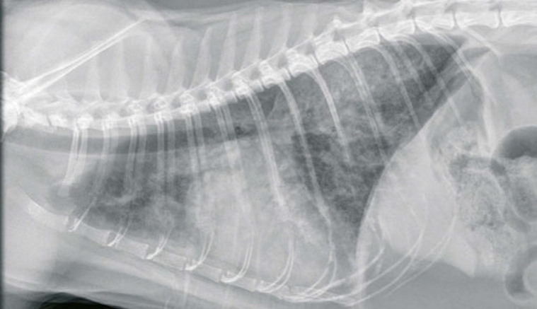 La valeur plasmatique du NT-proBNP est plus élevée lors de dyspnée d'origine cardiaque comparé aux dyspnées d'originerespiratoires ; ici un chat présentant un oedème aigu du poumon secondaire à une cardiomyopathie hypertrophique